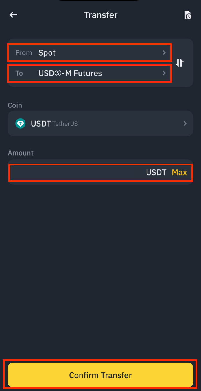 'Assets' → 'Futures' 클릭 → Transfer 선택