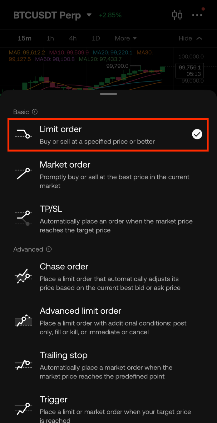 - Limit Order: 사용자가 설정한 가격에 도달하면 체결되는 주문 방식.