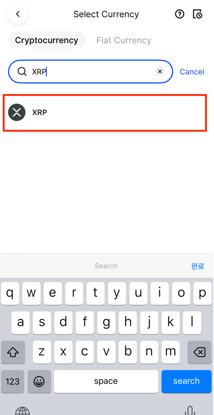 검색창에 XRP를 입력하거나 리스트에서 직접 선택합니다.
