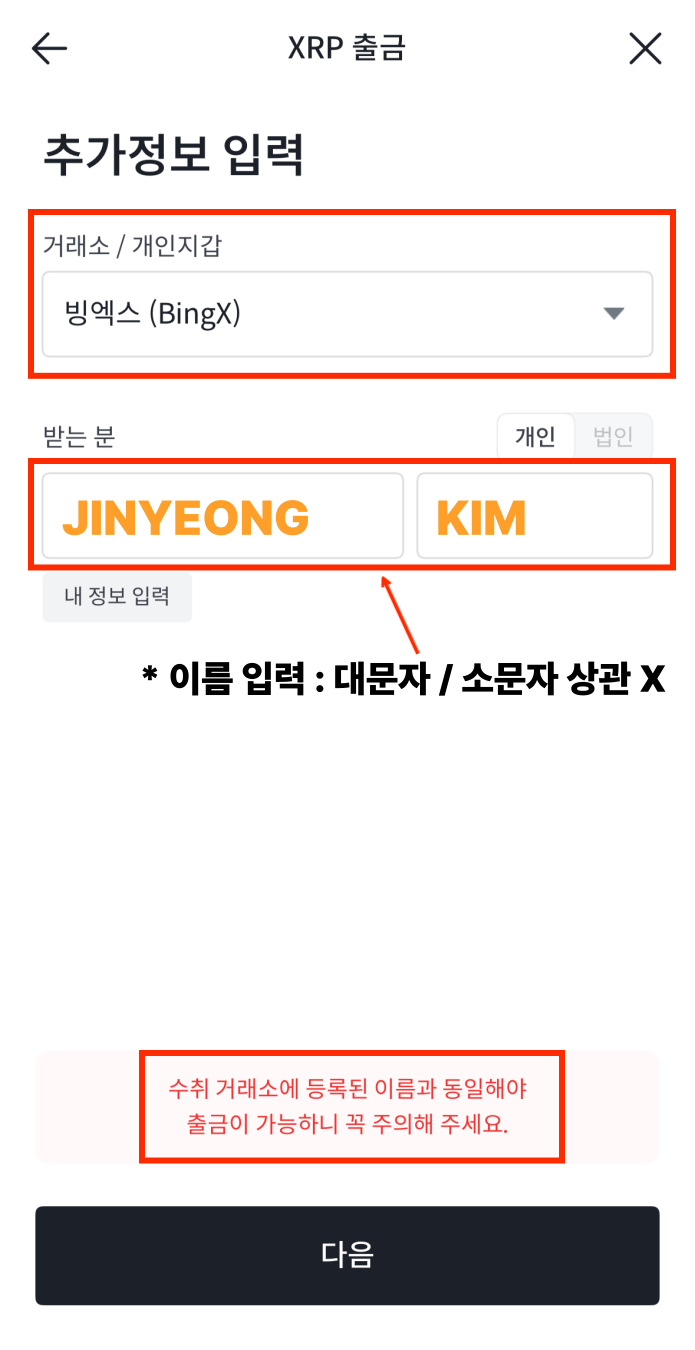 (빙엑스에서 입력한 영문명과 일치해야하며, 대문자/소문자는 상관없습니다.)