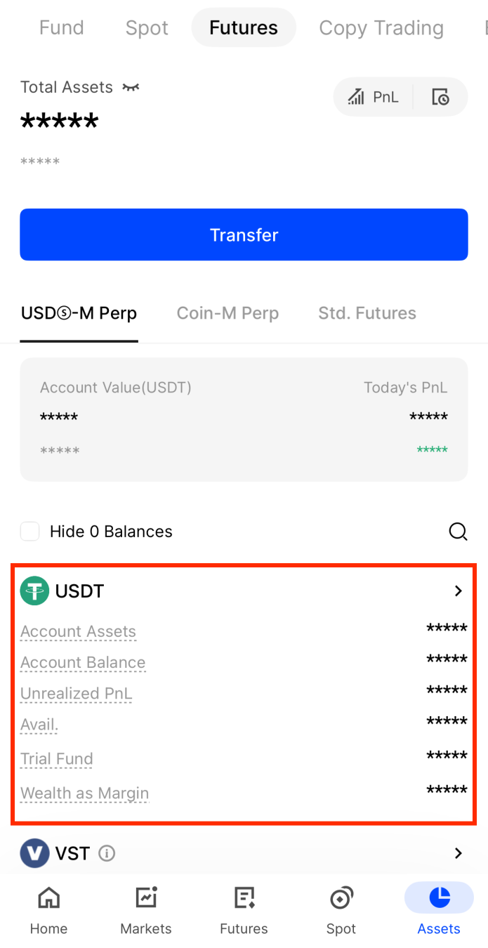 - Assets 화면으로 돌아와 전환된 USDT(테더)를 확인하실 수 있습니다.