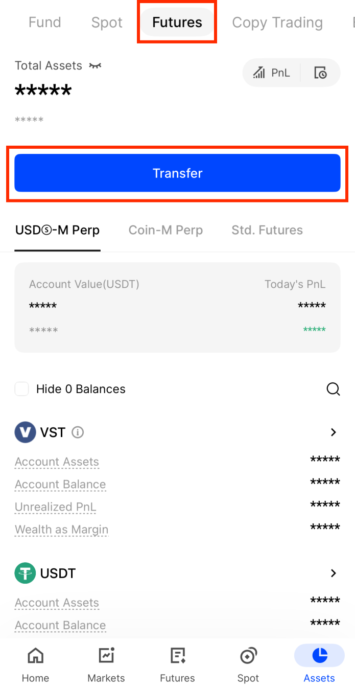 - 아래 과정을 통해 Spot에 있던 테더(USDT)를 선물 거래용으로 전환합니다.