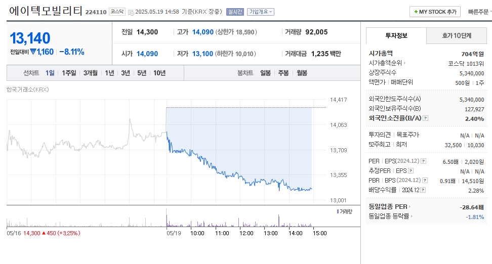 이전에 에이텍티엔으로 불리었던 에이텍모빌리티는 대장주 에이텍의 자회사로, 이재명 테마 수급이 형성될 때 항상 동반 상승하는 종목입니다.