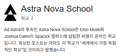 Astra Nova는 원래 스페이스X 사옥 내에 있는 소규모 실험학교였고, 교사진도 일반 교사보다는 연구자·스타트업 창업가·과학자 출신들이 많았죠.